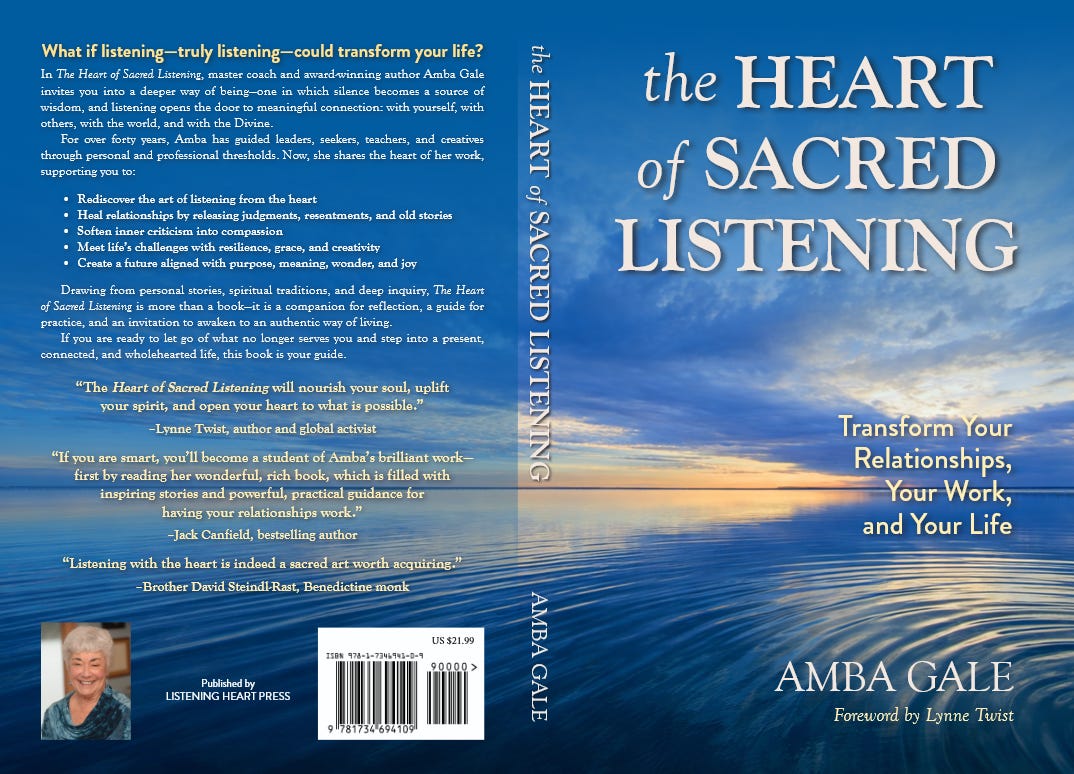 I also want to share the final cover with you. It feels very complete now—the rippling water, the spaciousness, the color blue, like the spirit of Sacred Listening.